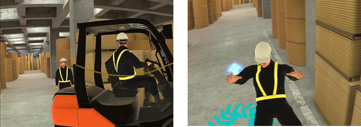 現実では難しい、墜落、落下、挟まれ、感電等の体験をVRで再現し、体感することによって、安全意識の向上が図れる。