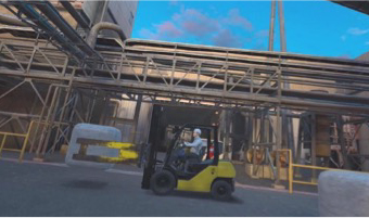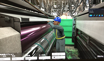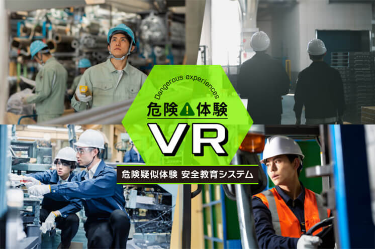 現場の様々な危険を想定したVR(バーチャルリアリティ)を通して現場の危険を疑似体験する安全教育システムです。